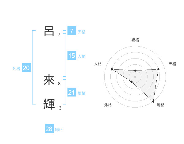 呂 來輝さんの総格は28画の1点!