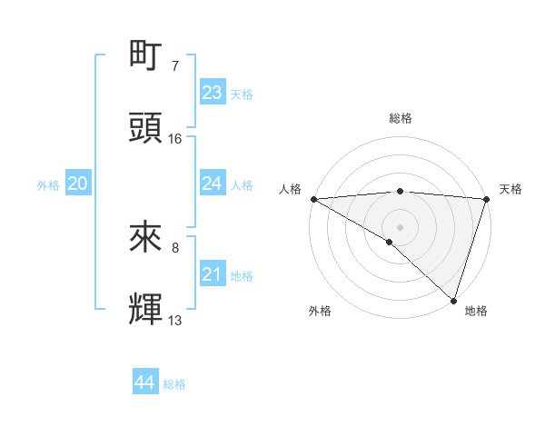 町頭 來輝さんの総格は44画の2点!
