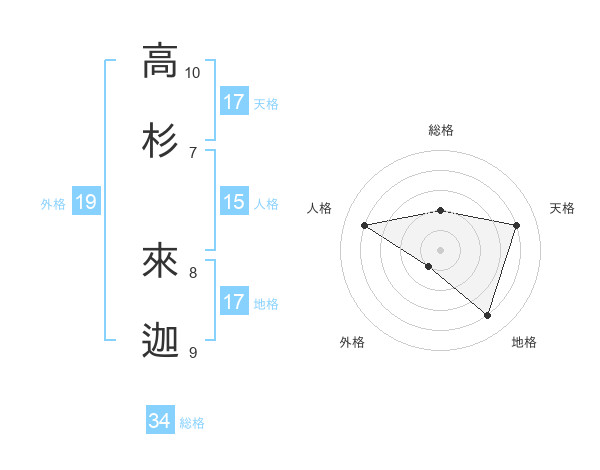 高杉 來迦さんの天格は17画の4点!