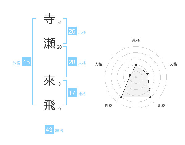 寺瀬 來飛さんの天格は26画の2点!