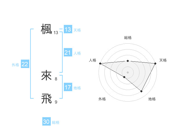 楓 來飛さんの総格は30画の2点!