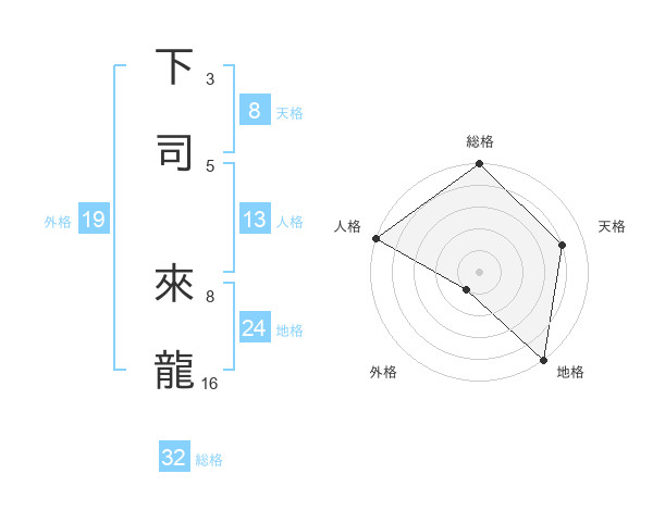 下司 來龍さんの総格は32画の5点!