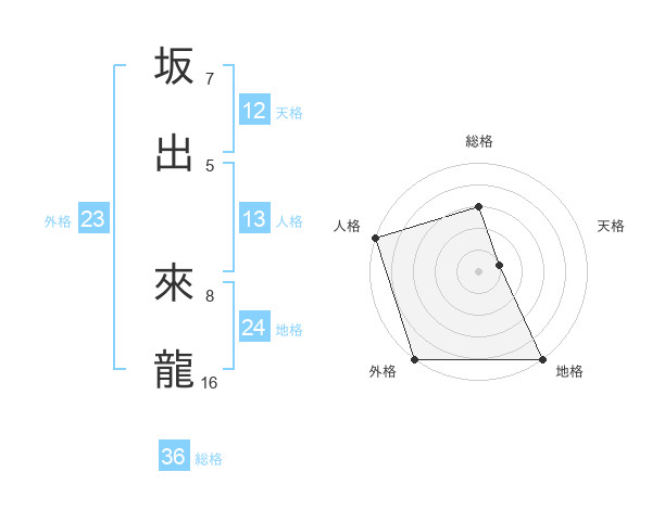 坂出 來龍さんの外格は23画の5点!