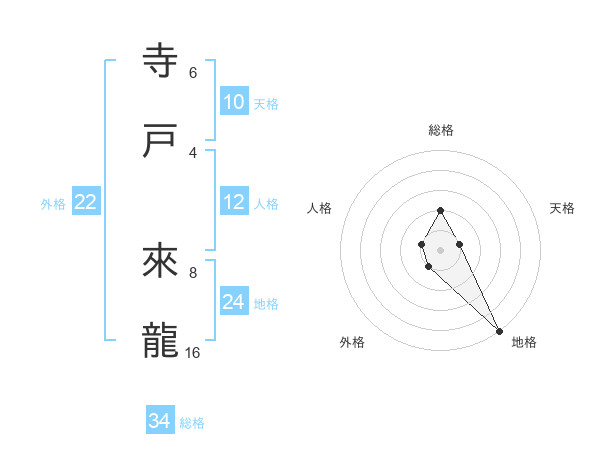 寺戸 來龍さんの総格は34画の2点!