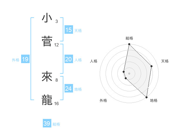 小菅 來龍さんの総格は39画の5点!