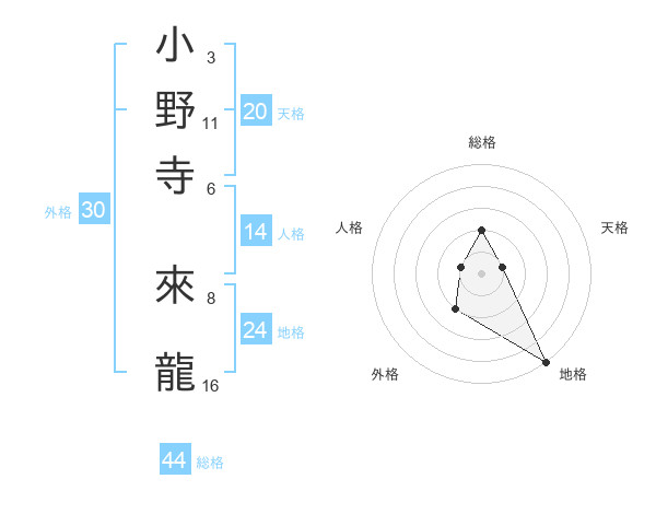 小野寺 來龍さんを姓名の画数から五運を鑑定