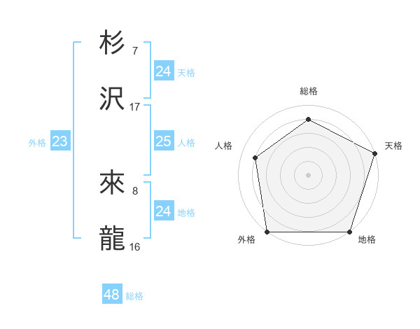 杉沢 來龍さんの地格は24画の5点!