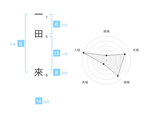 一田 來さんの天格は6画の4点!