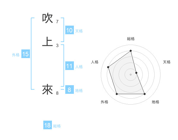 吹上 來さんの総格は18画の4点!