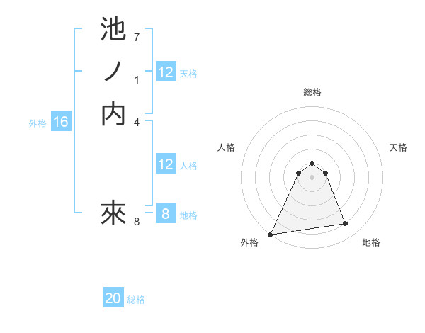 池ノ内 來さんの総格は20画の1点!