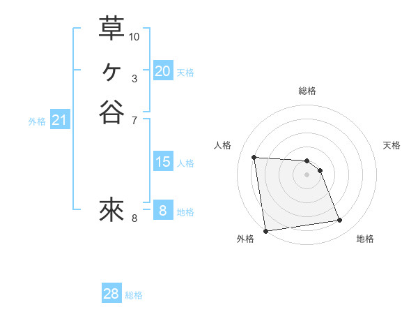 草ヶ谷 來さんを姓名の画数から五運を鑑定