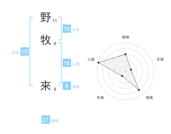 野牧 來さんの総格は27画の3点!