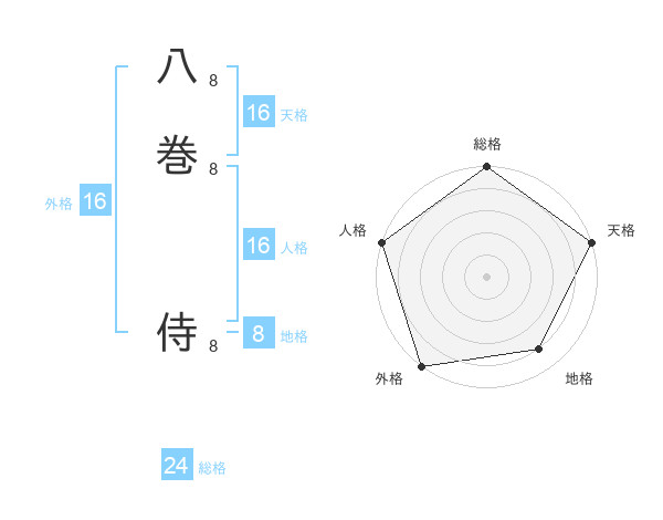 八巻 侍さんの外格は16画の5点!