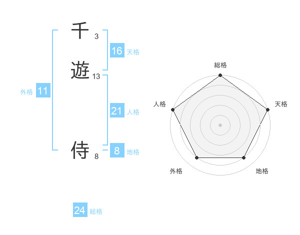 千遊 侍さんの総格は24画の5点!