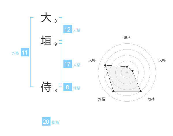 大垣 侍さんの総格は20画の1点!
