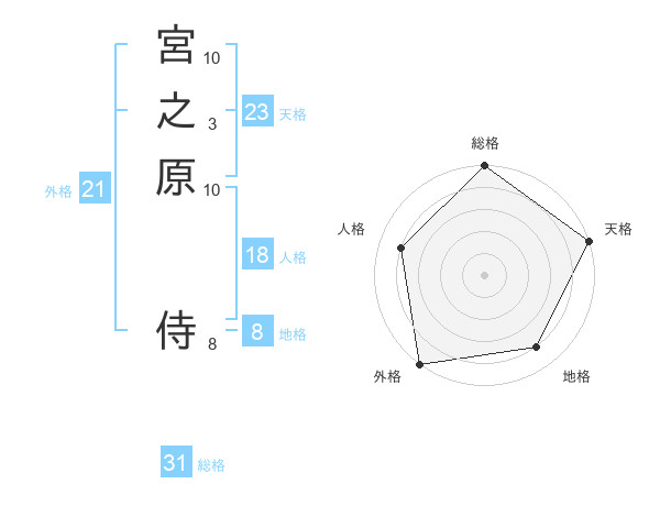 宮之原 侍さんを姓名の画数から五運を鑑定