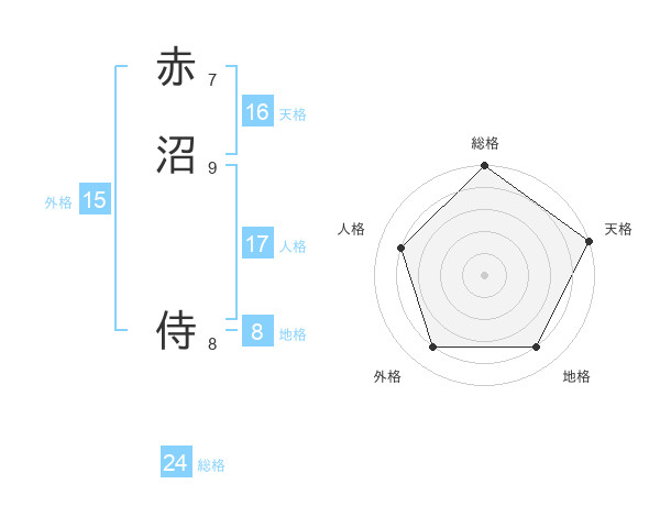 赤沼 侍さんを姓名の画数から五運を鑑定