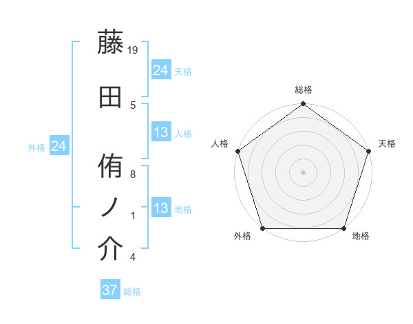 藤田 侑ノ介さんの地格は13画の5点!