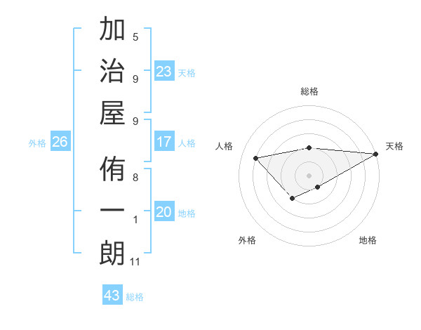 加治屋 侑一朗さんの天格は23画の5点!