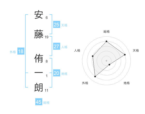 安藤 侑一朗さんの総格は45画の4点