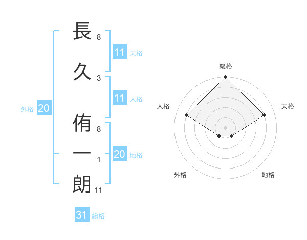 長久 侑一朗さんの天格は11画の4点!