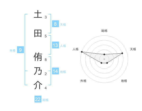 土田 侑乃介さんの総格は22画の1点!