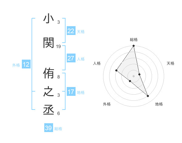 小関 侑之丞さんを姓名の画数から五運を鑑定