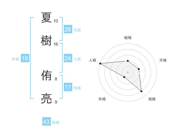 夏樹 侑亮さんを姓名の画数から五運を鑑定