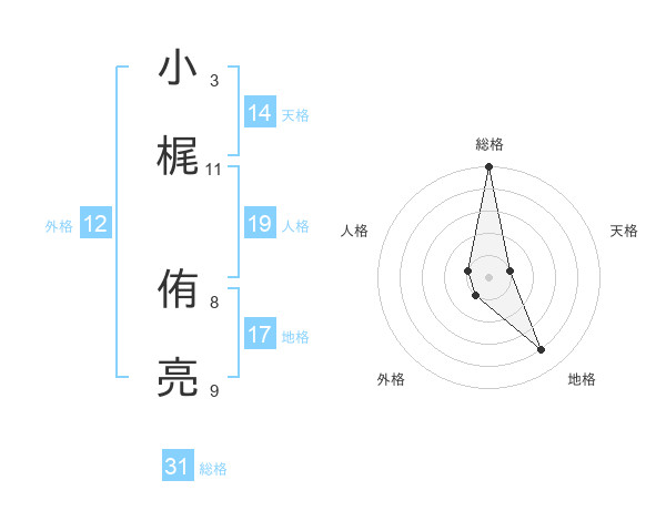 小梶 侑亮さんを姓名の画数から五運を鑑定