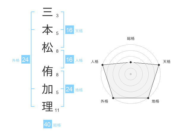 三本松 侑加理さんの外格は24画の5点!