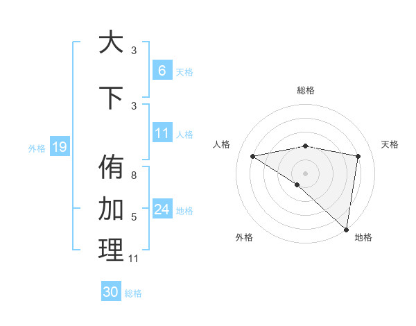 大下 侑加理さんを姓名の画数から五運を鑑定
