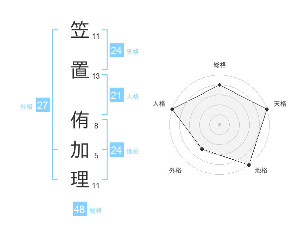 笠置 侑加理さんを姓名の画数から五運を鑑定