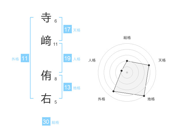 寺﨑 侑右さんの天格は17画の4点!