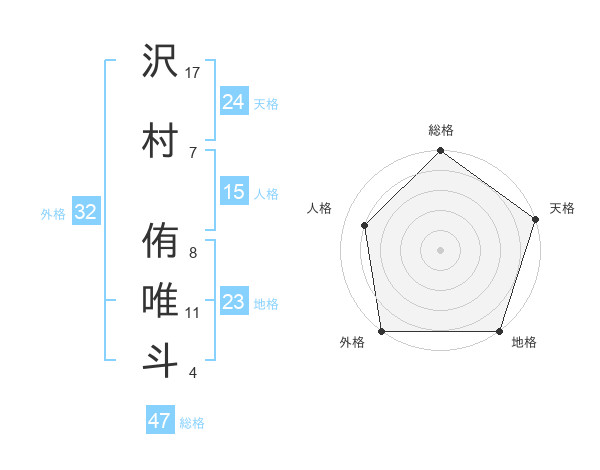 沢村 侑唯斗さんの総格は47画の5点!
