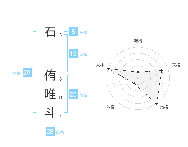 石 侑唯斗さんの外格は20画の1点!