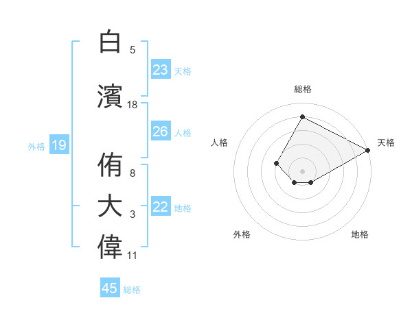 白濱 侑大偉さんの天格は23画の5点!