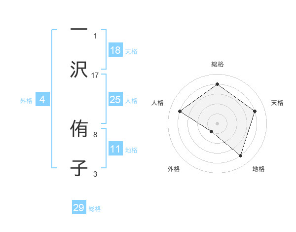 一沢 侑子さんを姓名の画数から五運を鑑定