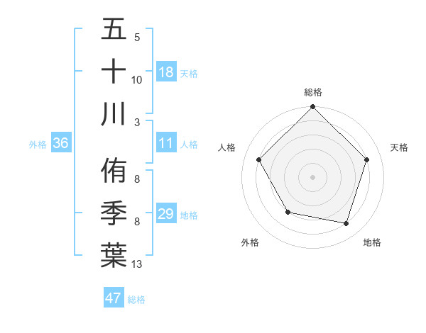 五十川 侑季葉さんを姓名の画数から五運を鑑定