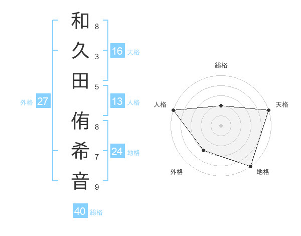 和久田 侑希音さんを姓名の画数から五運を鑑定