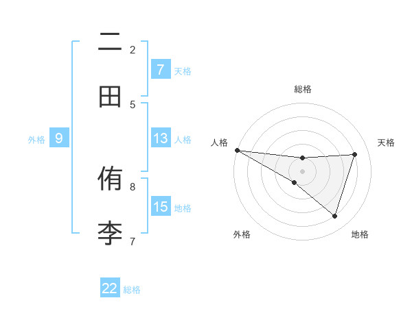 二田 侑李さんの総格は22画の1点!