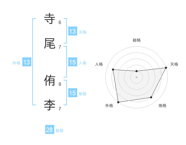 寺尾 侑李さんの外格は13画の5点!