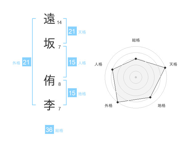 遠坂 侑李さんの天格は21画の5点!