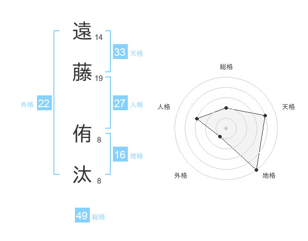 遠藤 侑汰さんの総格は49画の2点!