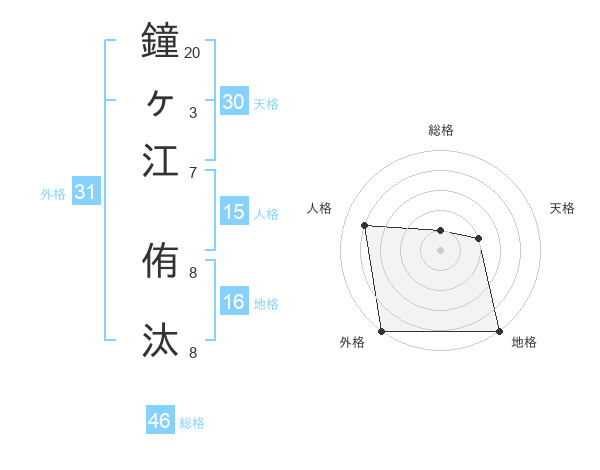 鐘ヶ江 侑汰さんの外格は31画の5点