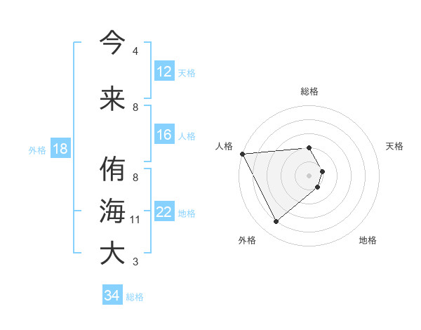 今来 侑海大さんを姓名の画数から五運を鑑定