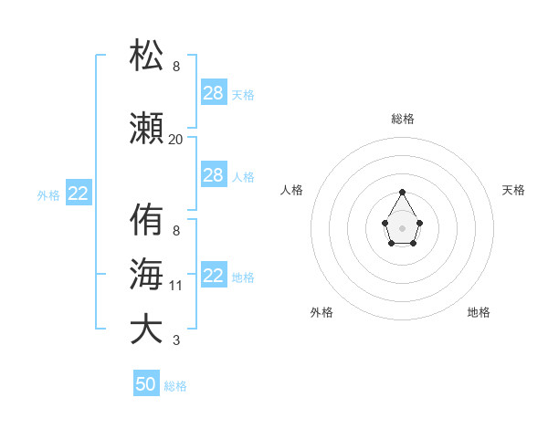 松瀬 侑海大さんを姓名の画数から五運を鑑定