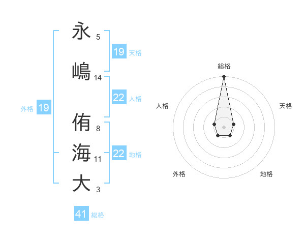 永嶋 侑海大さんの総格は41画の5点!