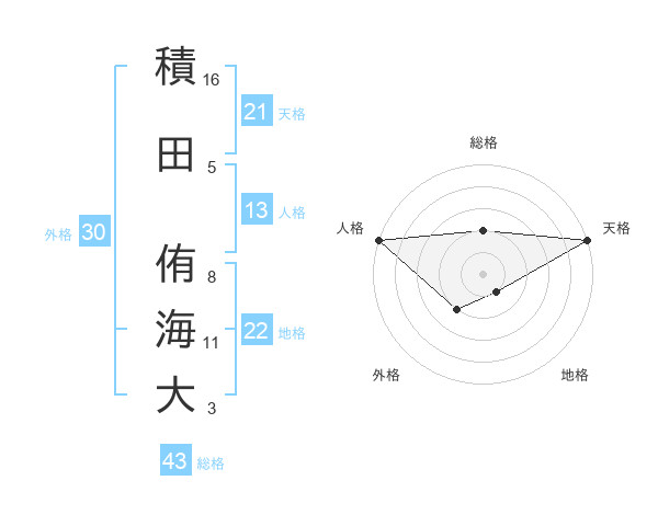 積田 侑海大さんの天格は21画の5点!
