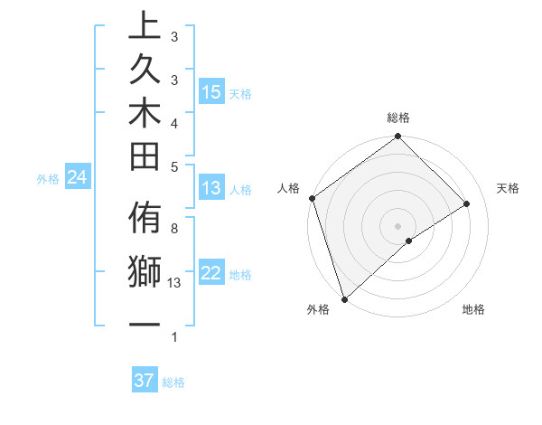 上久木田 侑獅一さんの総格は37画の5点