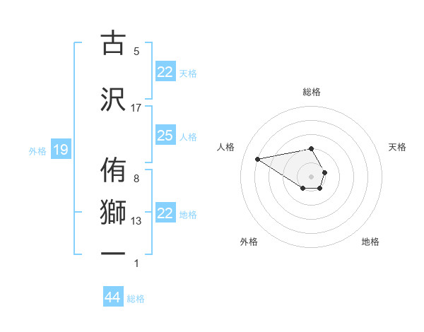 古沢 侑獅一さんの地格は22画の1点!